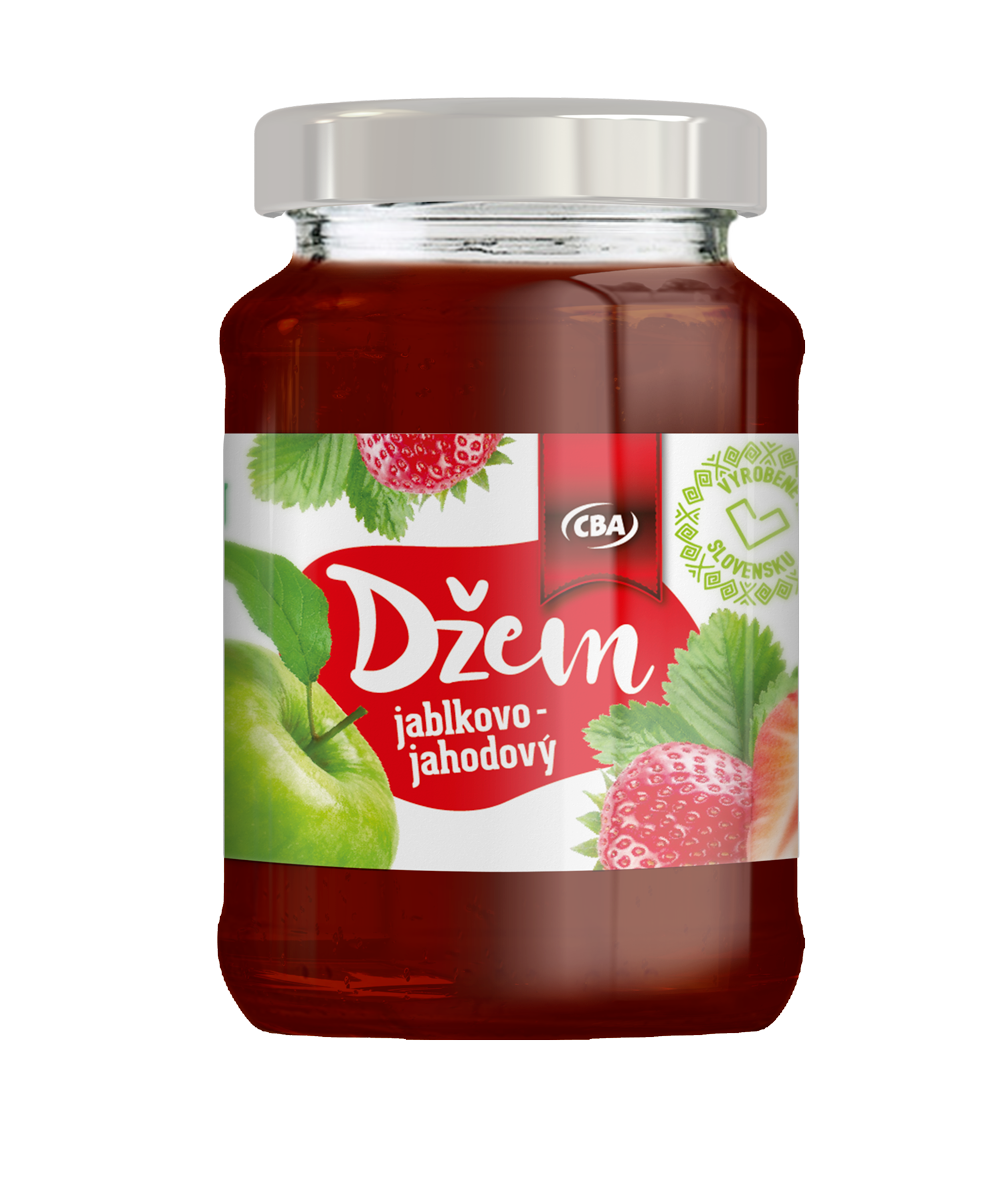 cukor (61 %), jablková dreň (20 %), jahody (15 %), regulátor kyslosti: kyselina citrónová, želírujúca látka: pektín