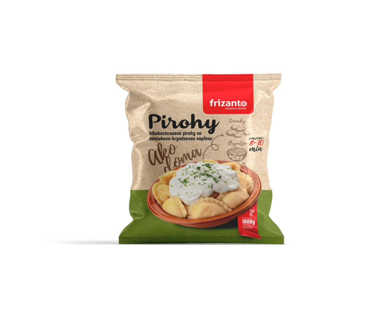 cesto [pšeničná múka, pitná voda, jedlá soľ jódovaná (jedlá soľ 99,6%, jodičnan draselný)], zemiakovo-bryndzová náplň 42% [zemiaky 63,5%, bryndza 35% (ovčí hrudkový syr z pasterizovaného mlieka, kravský hrudkový syr z pasterizovaného mlieka, pitná voda, jedlá soľ), jedlá soľ jódovaná (jedlá soľ 99,6%, jodičnan draselný)]